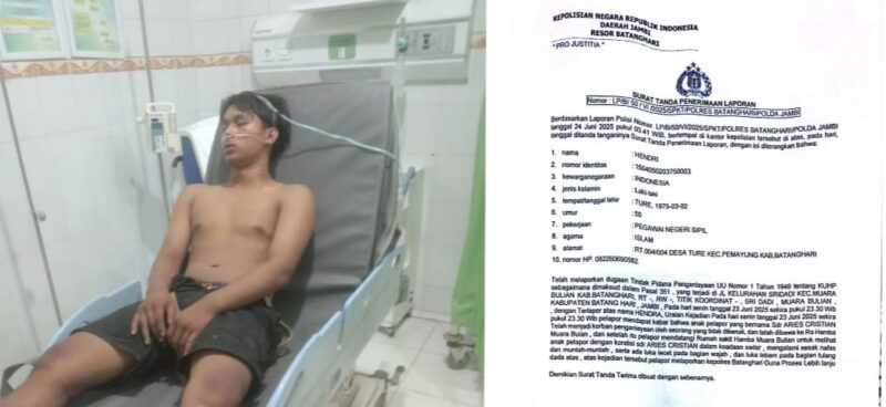 Pemayungnews.id- BATANGHARI – Warga Desa Ture Kecamatan Pemayung Kabupaten Batanghari Provinsi Jambi (ARS) mengalami kasus penganiayaan yang menyebabkan korban babak belur oleh seseorang pemuda yang berinisial (HND), kejadian tersebut terjadi di Kelurahan Sridadi Kecamatan Muara Bulian, Senin 23/06/2025 sekira pukul 23.00 WIB